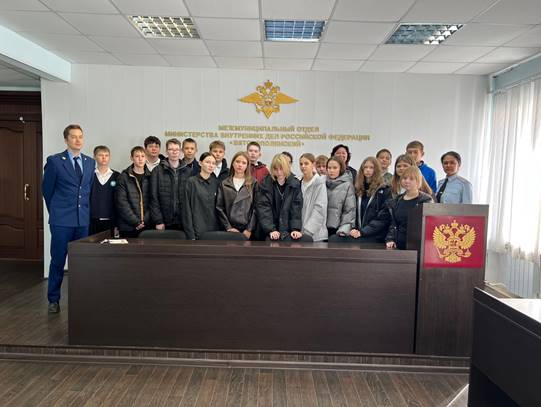 Сегодня учащиеся 8В класса Вятского многопрофильного лицея посетили межмуниципальный отдел МВД России «Вятскополянский». Экскурсия была организована совместно с заместителем Вятскополянского межрайонного прокурора Шебуховым Е. В. с целью информированности школьников с деятельностью правоохранительных органов и проведения профилактической работы.