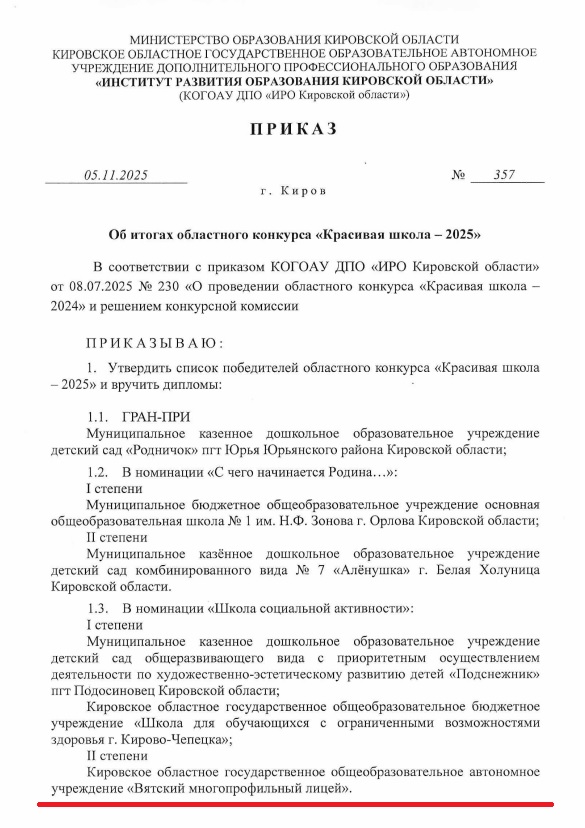 Подведены итоги областного конкурса «Красивая школа — 2025».