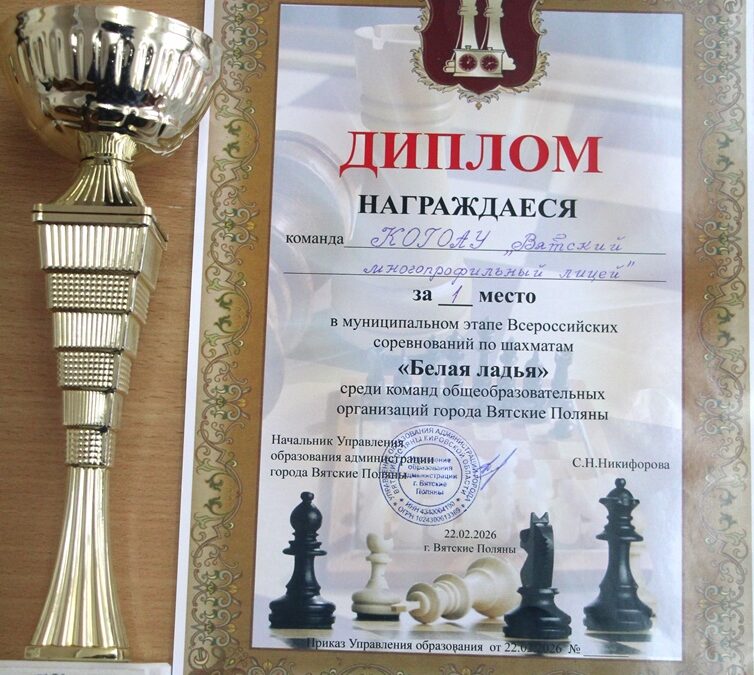 22 февраля 2026 года был проведен муниципальный этап Всероссийских соревнований по шахматам «Белая Ладья» среди команд общеобразовательных организаций города Вятские Поляны. Цель соревнований — пропаганда здорового образа жизни среди подрастающего поколения, духовного, патриотического воспитания молодежи, дальнейшей популяризации массовых видов спорта среди детей и подростков.