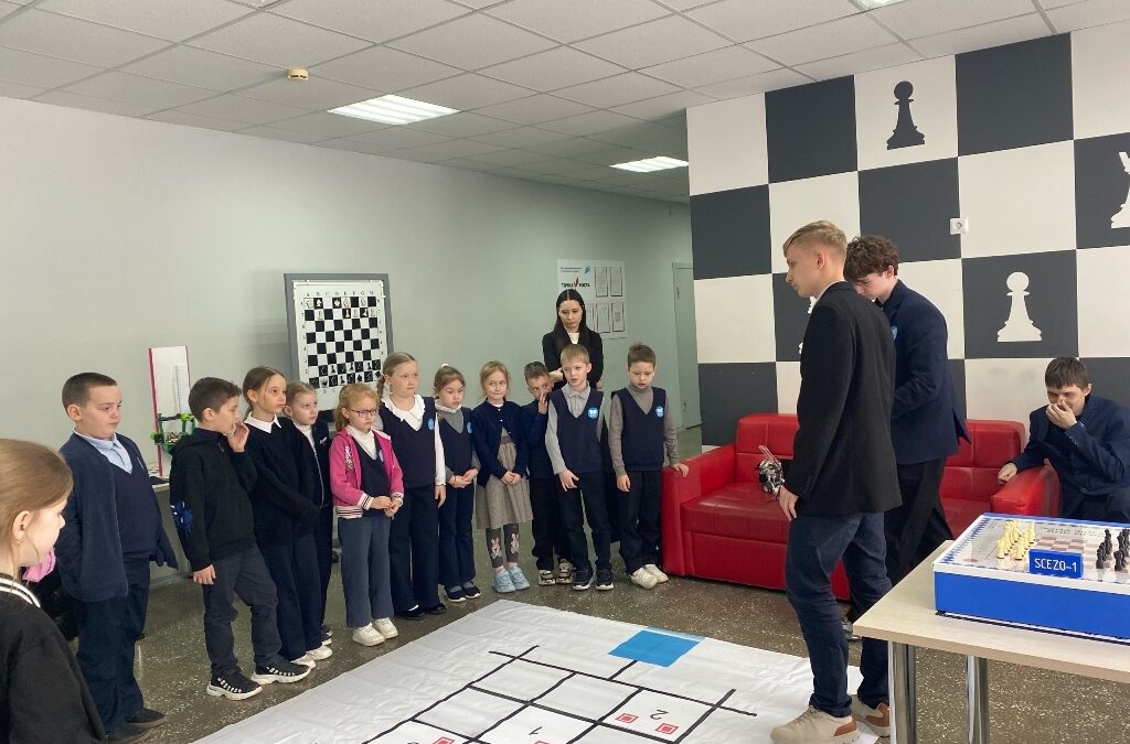 На четвертой станции наши гости увидели более сложные робототехнические устройства: роботов, которые умеют определять цвет и используют камеры технического зрения, могут решать сложные математические задачи, например, решать задачу «Судоку» Интеллектуальной Олимпиады ПФО по робототехнике, проекты по созданию рисующих роботов, роботизированные игровые устройства — робота по игре в крестики-нолики, робота по игре в шахматы.